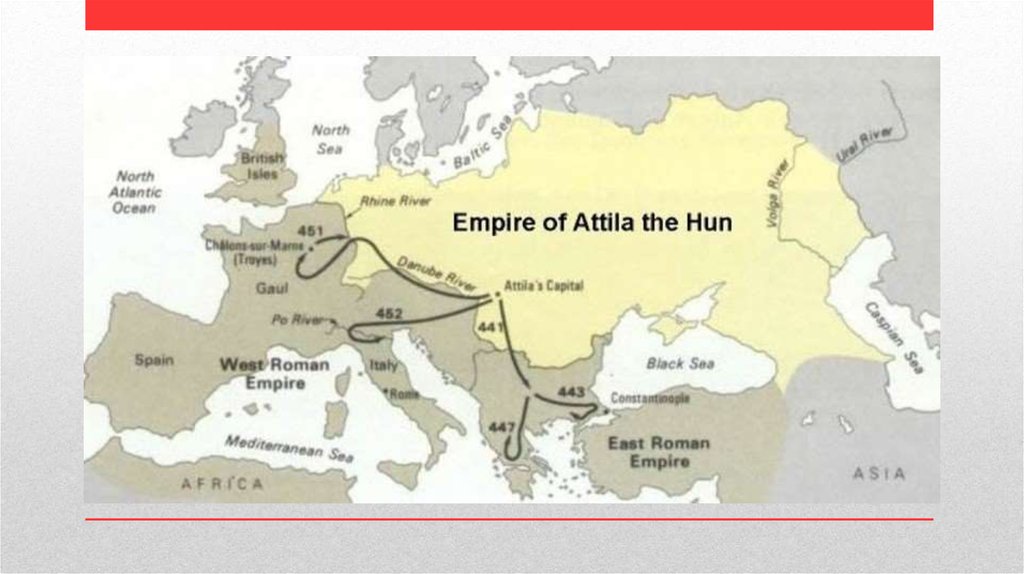 Разгромлен был Аттила в 451 г. На Каталийских полях на