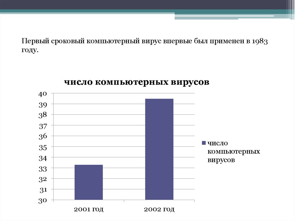 Первый сроковый компьютерный вирус впервые был применен в 1983году.