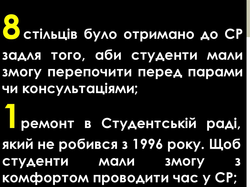 8 стільців було отримано до СРзадля того, аби студенти мали