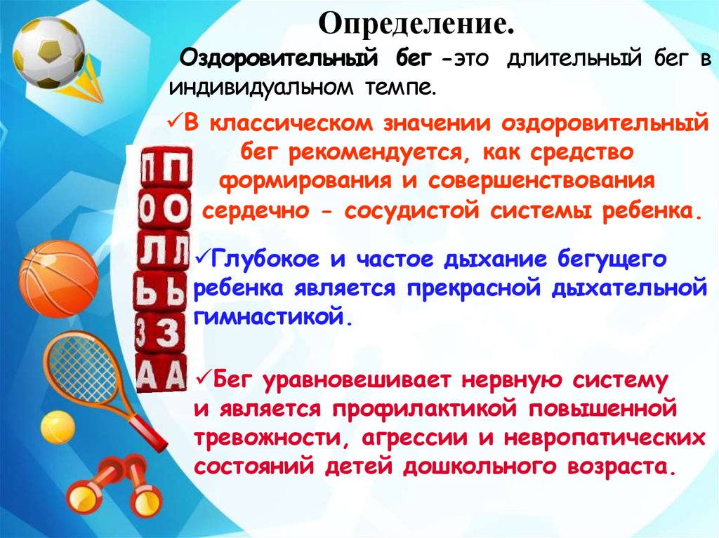 времени пробежки бежит вместе с детьми, сбоку от группы,