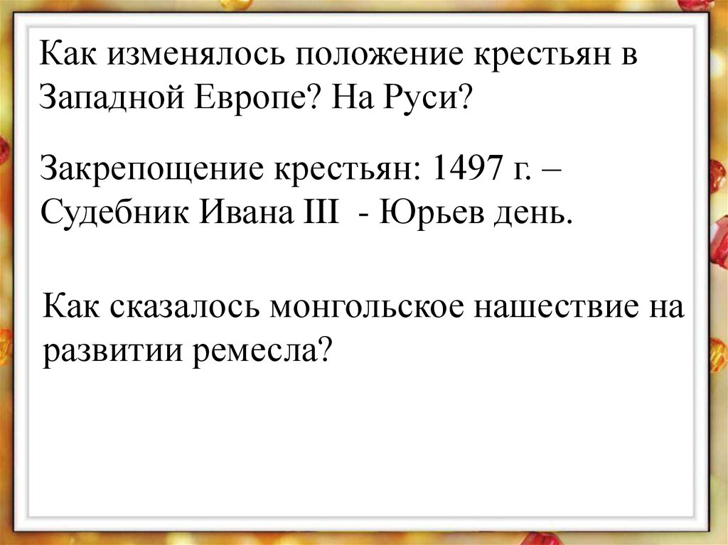 Как изменялось положение крестьян вЗападной Европе? На Руси?