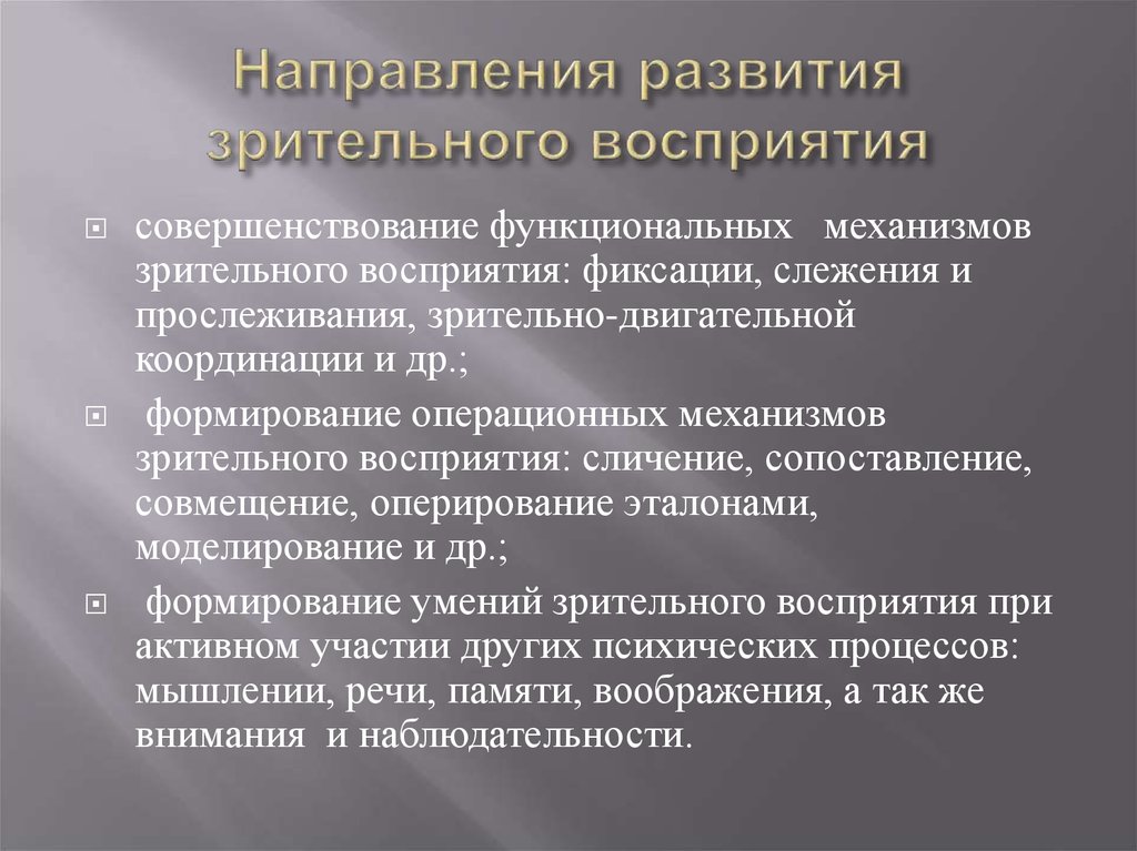 формирование умений зрительного восприятия при