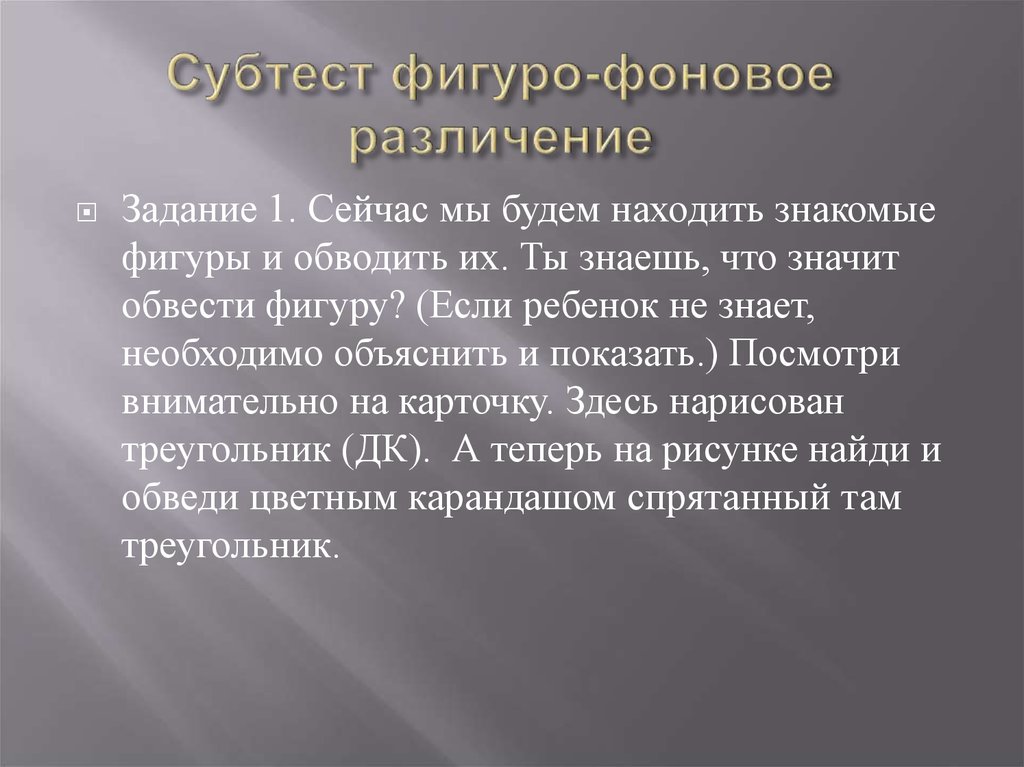 Фигуро - фоновое различение.Зрительно-пространственное