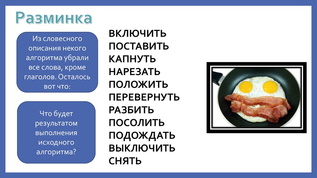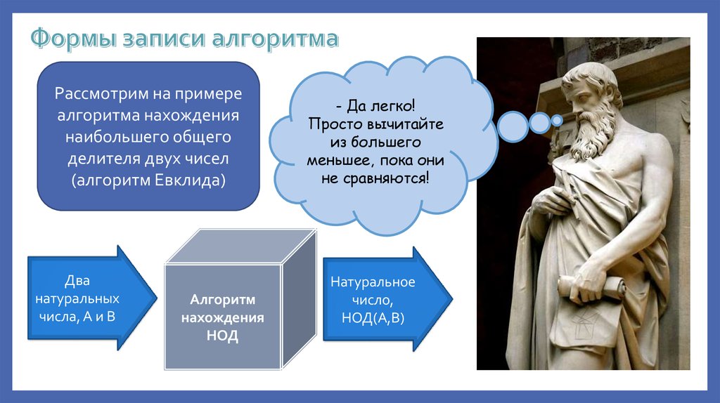 • Познакомимся с разными формами описания алгоритмов и