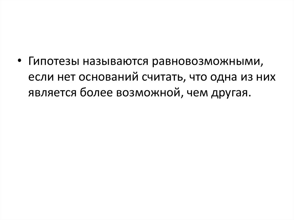 • Гипотезы называются равновозможными,если нет оснований считать, что одна из них