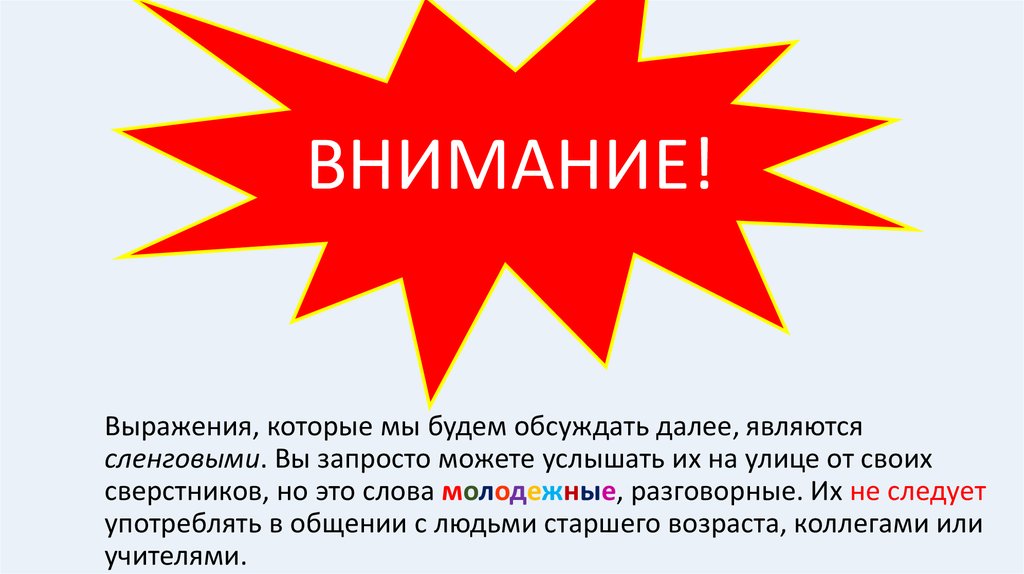 сленговыми. Вы запросто можете услышать их на улице от своих