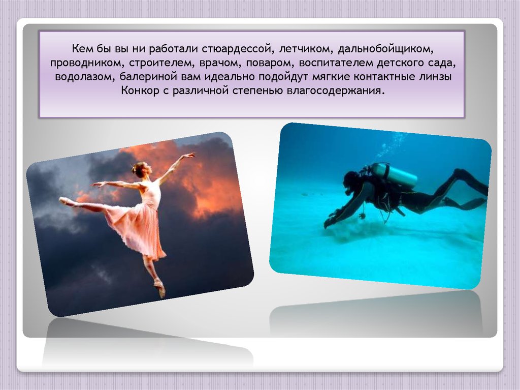 водолазом, балериной вам идеально подойдут мягкие контактные линзы