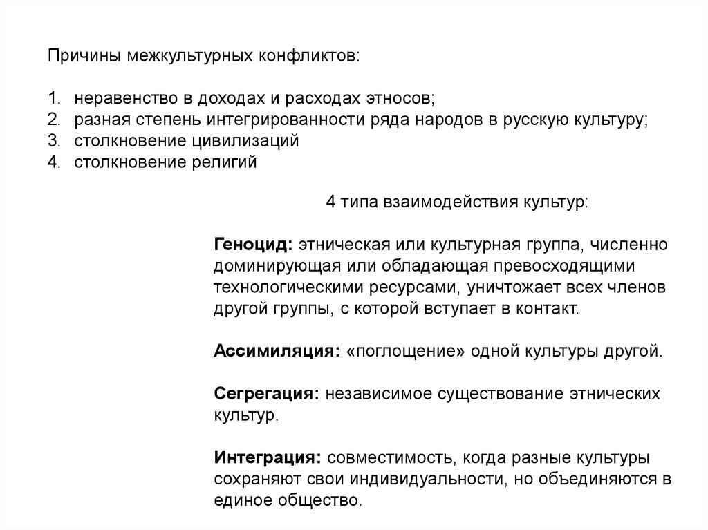 Причины межкультурных конфликтов:1.