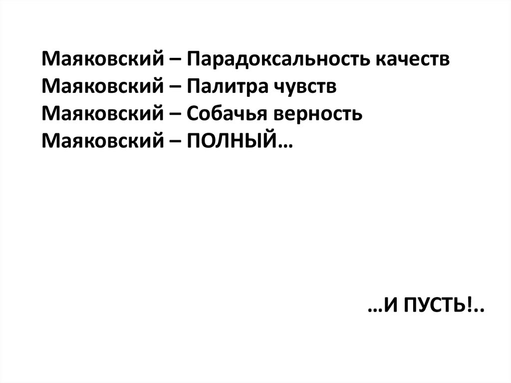 Маяковский – Парадоксальность качествМаяковский – Палитра чувств