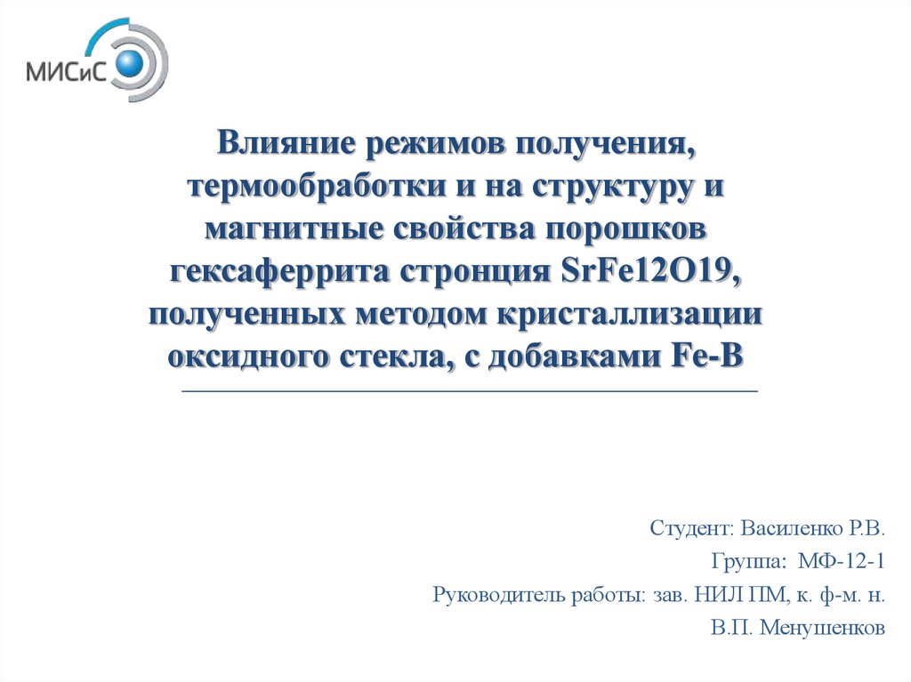 Влияние режимов получения, термообработки и на структуру и магнитные свойства порошков гексаферрита стронция