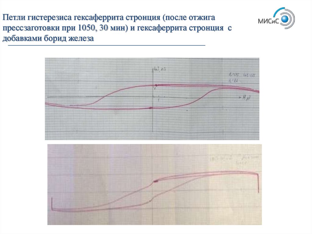 Петли гистерезиса гексаферрита стронция (после отжигапрессзаготовки при 1050, 30 мин) и гексаферрита стронция с