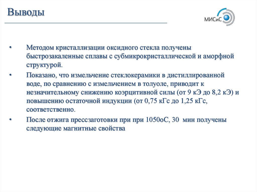 ВыводыМетодом кристаллизации оксидного стекла получены