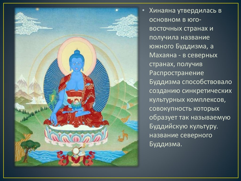 • Хинаяна утвердилась восновном в юговосточных странах и
