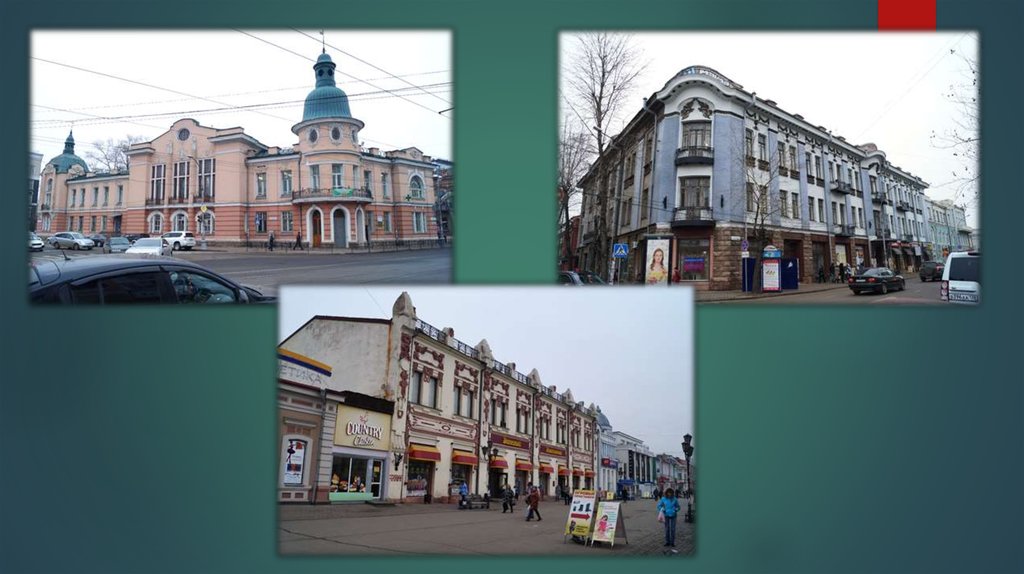 На третьей, заключительной стене, мы расположили изображения зданийстиля «Модерн», возведенных в 20 веке, которые на данный момент