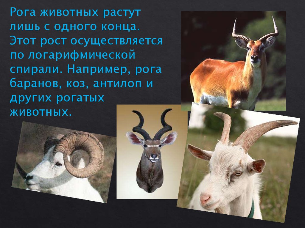 спирали. Например, рога
