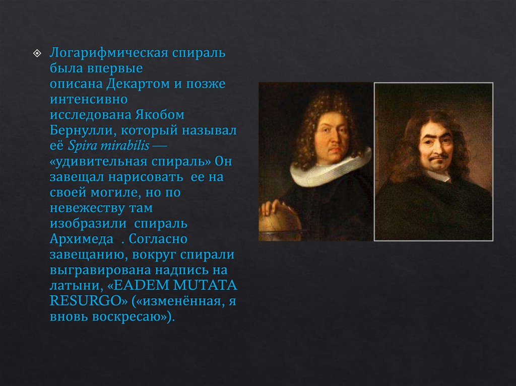 4. В природе логарифмы встречаются в виде логарифмической спирали