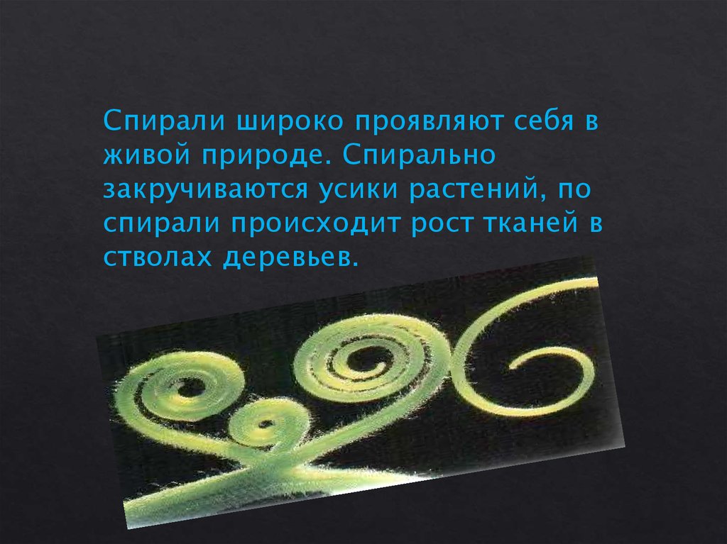 Спирали широко проявляют себя вживой природе. Спирально