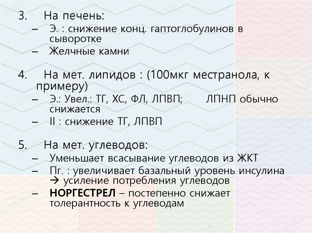 • ЛП содержащие 19Норпрогестины,особенно с низким количеством Э.,