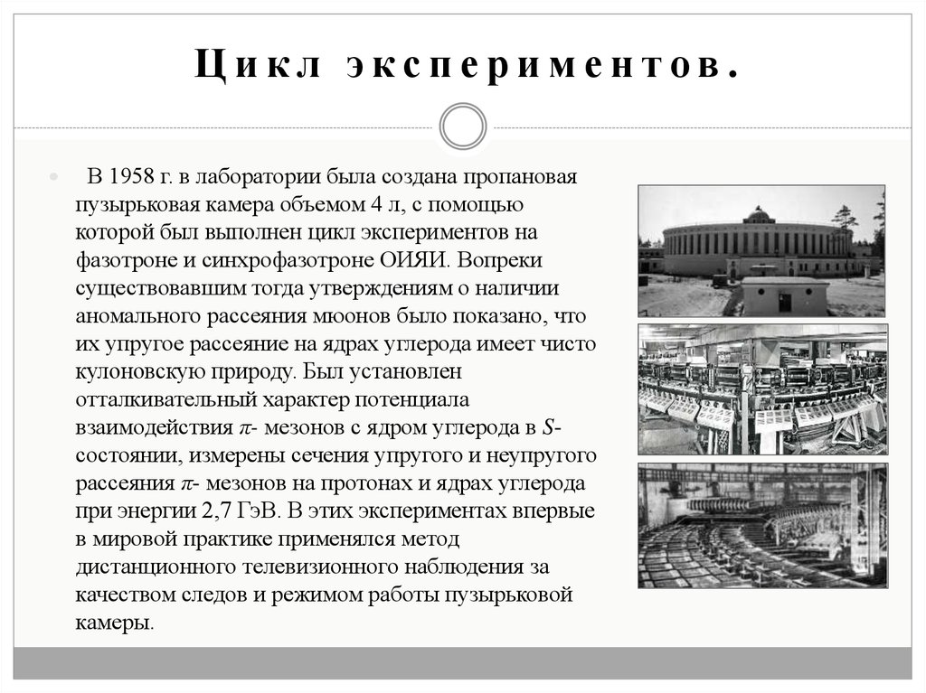 Фреоновая пузырьковая камера .В 1959 г.в лаборатории была создана гигантская для того времени фреоновая