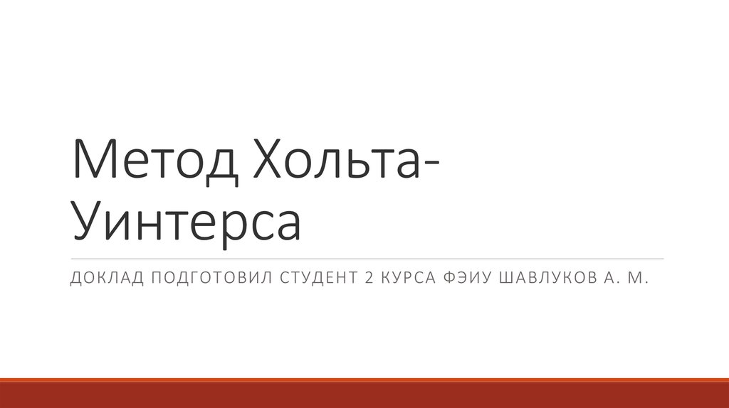 Метод ХольтаУинтерсаДОКЛАД ПОДГОТОВИЛ СТУДЕНТ 2 КУРСА ФЭИУ ШАВЛУКОВ А. М.