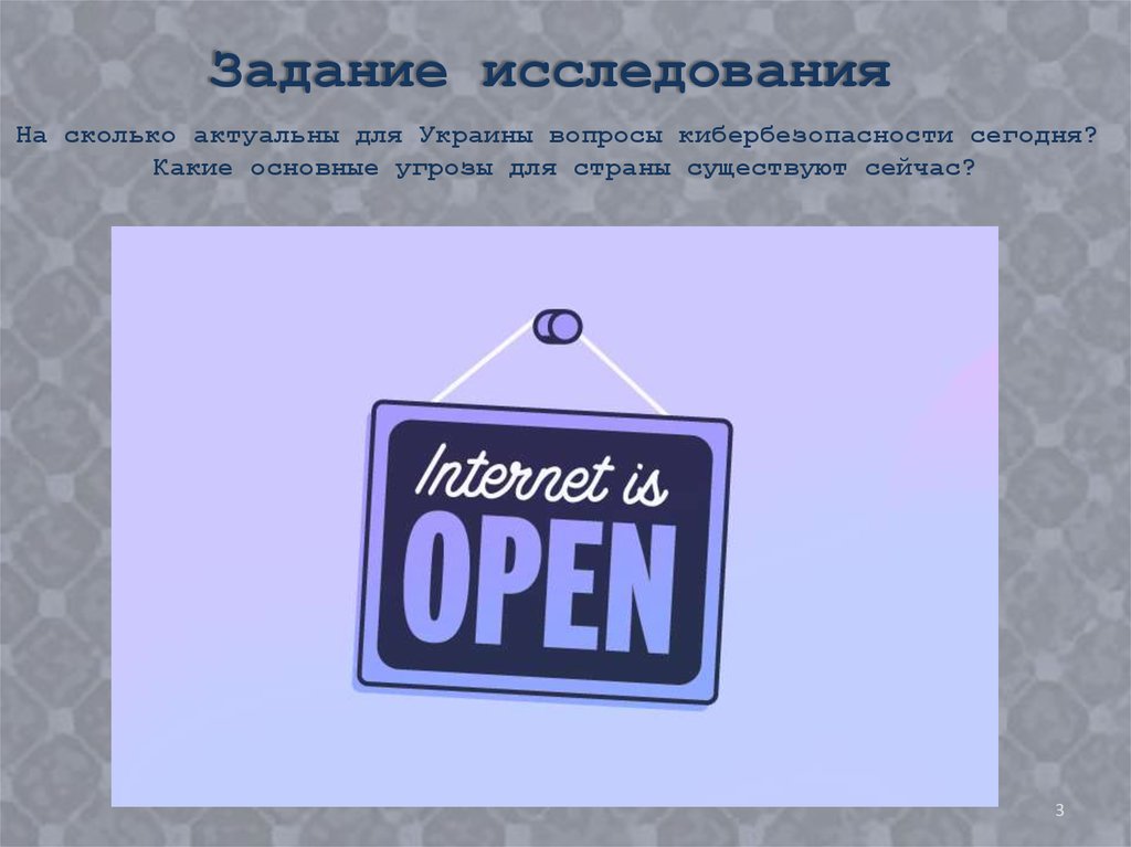 Задание исследованияНа сколько актуальны для Украины вопросы кибербезопасности сегодня?