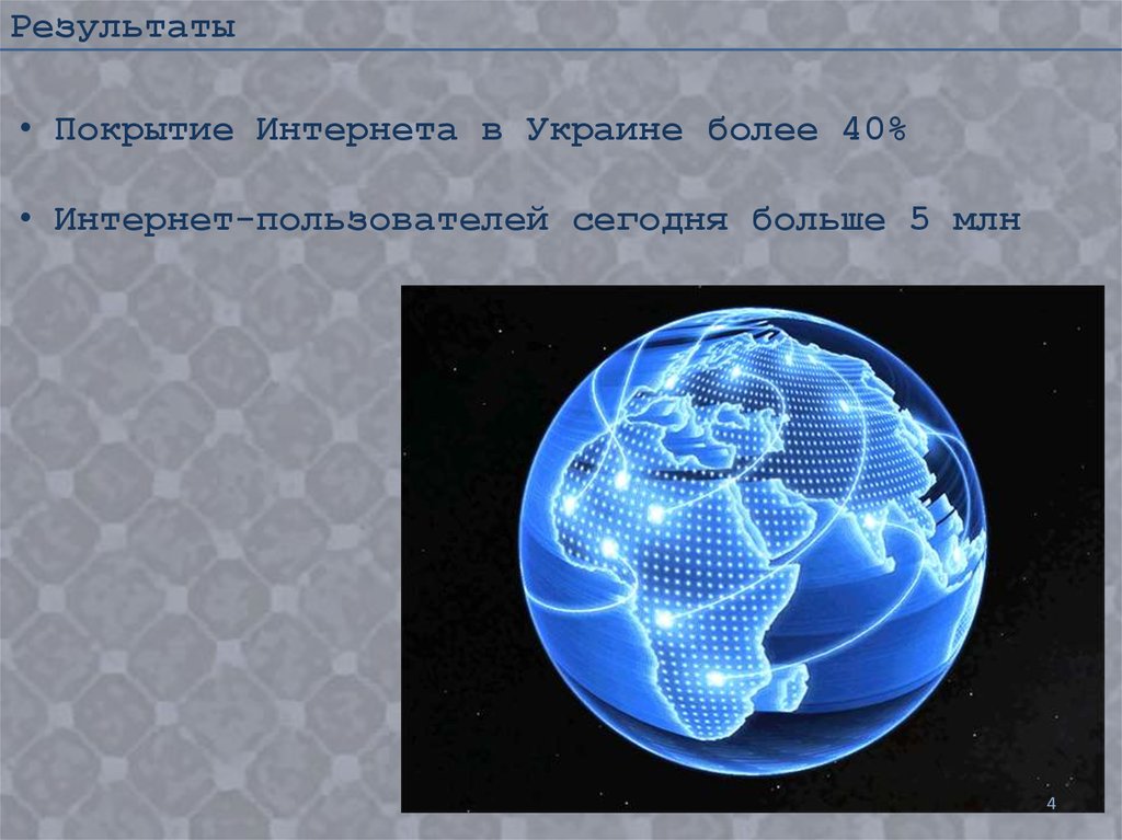 Результаты• Покрытие Интернета в Украине более 40%