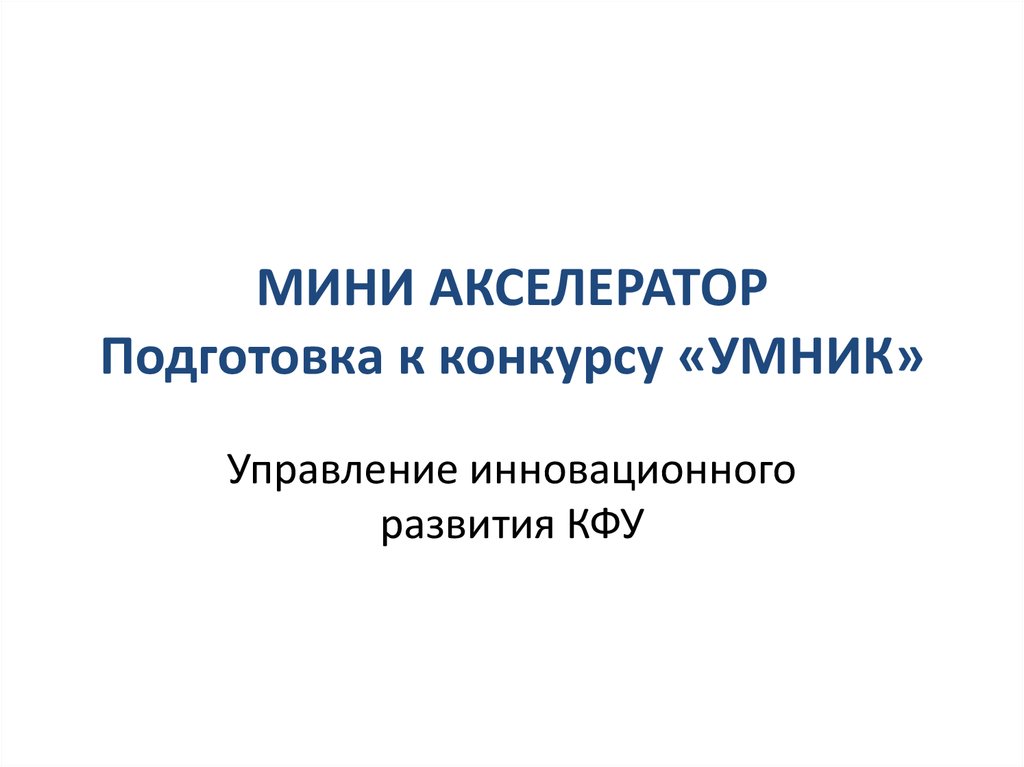 1. МИНИ АКСЕЛЕРАТОР Подготовка к конкурсу «УМНИК»