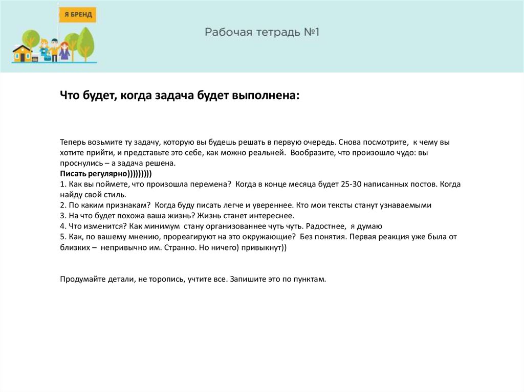 1. Как вы поймете, что произошла перемена? Когда в конце месяца будет 25-30 написанных постов. Когда