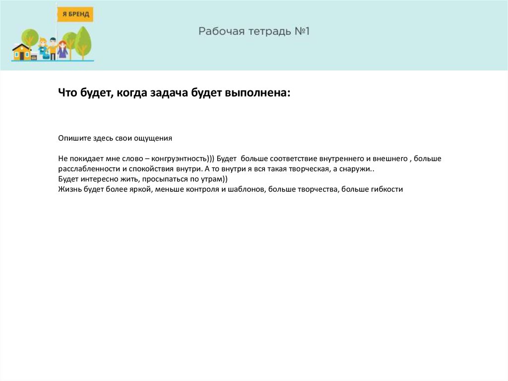 Что будет, когда задача будет выполнена:Опишите здесь свои ощущения