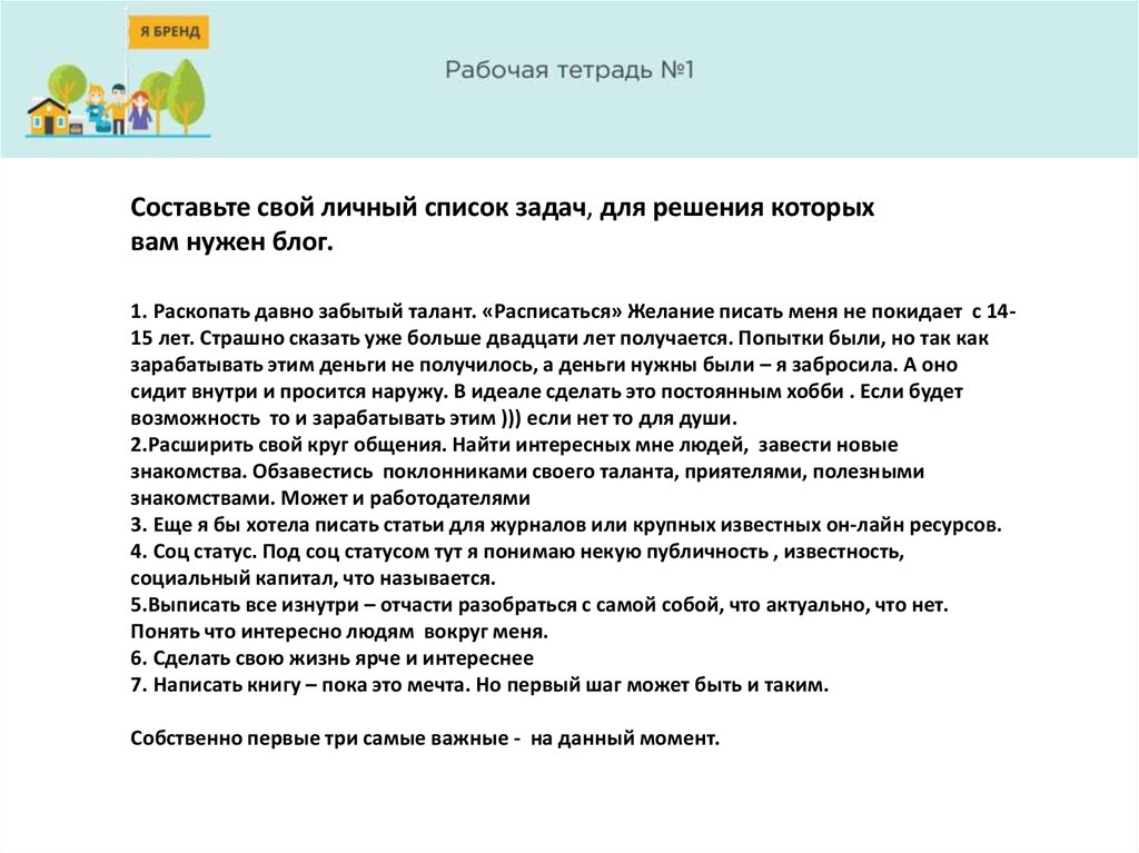 Составьте свой личный список задач, для решения которыхвам нужен блог.