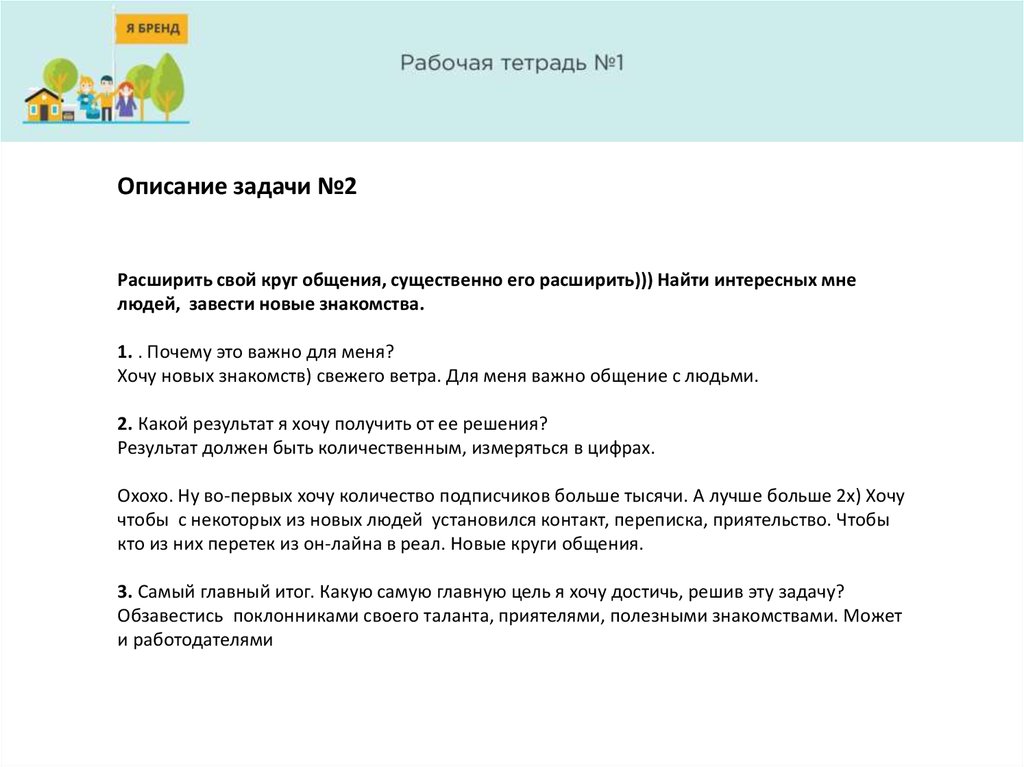 Описание задачи №2Расширить свой круг общения, существенно его расширить))) Найти интересных мне