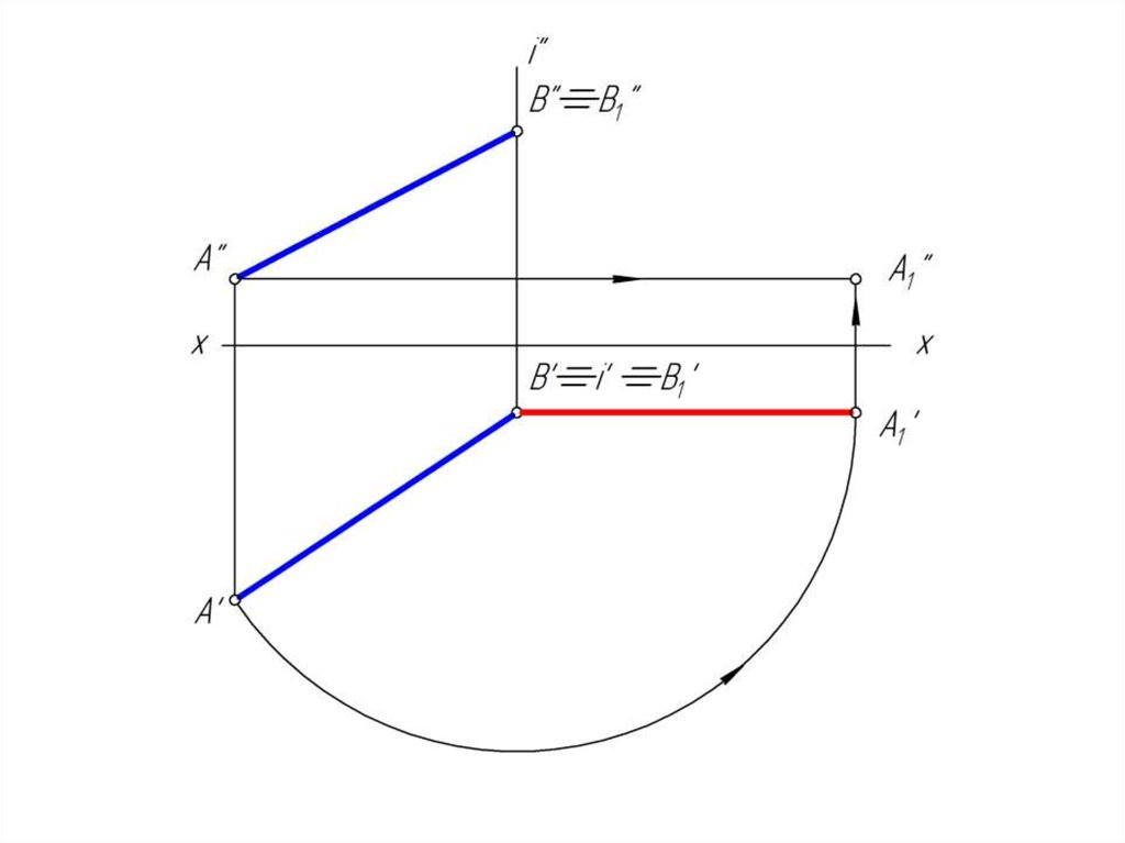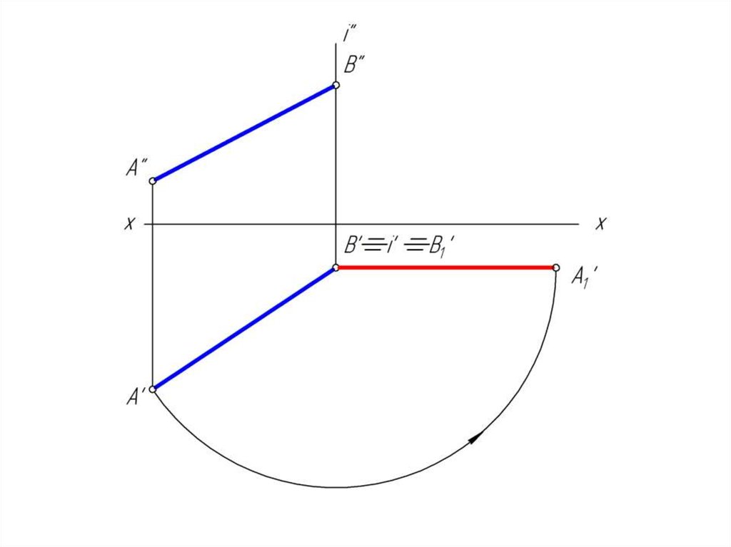 3. Способ вращения вокруг проецирующей оси Вращение отрезка