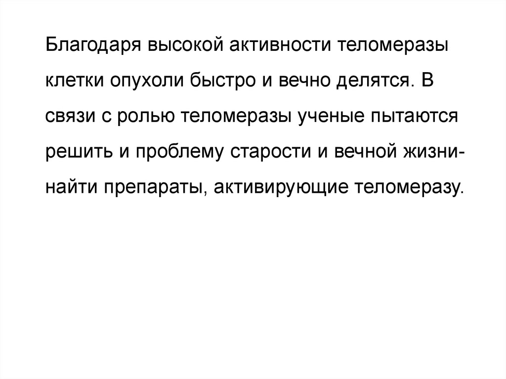 Благодаря высокой активности теломеразыклетки опухоли быстро и вечно делятся. В