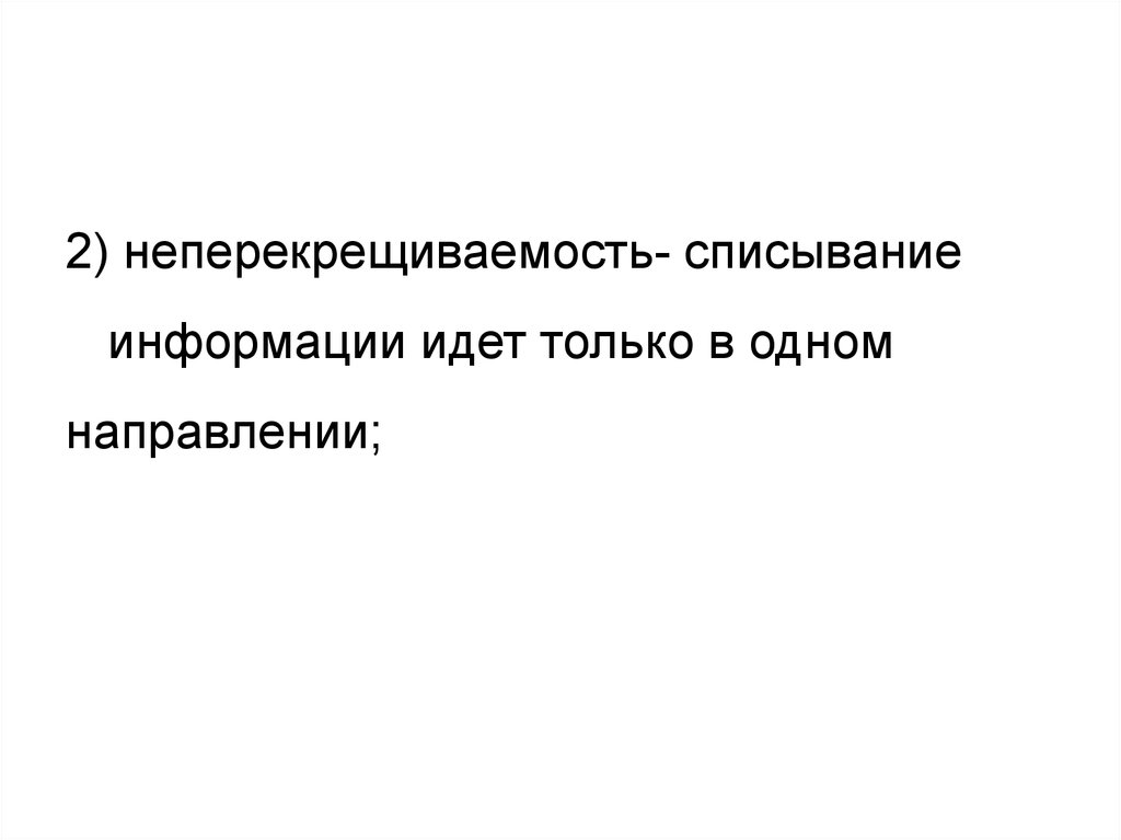 2) неперекрещиваемость- списываниеинформации идет только в одном