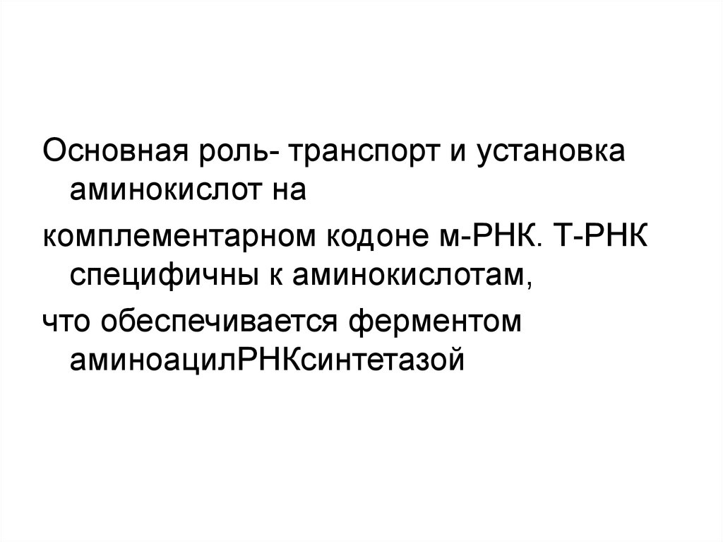 Т.о., т-РНК «метит» аминокислоту,придавая ей специфичность и