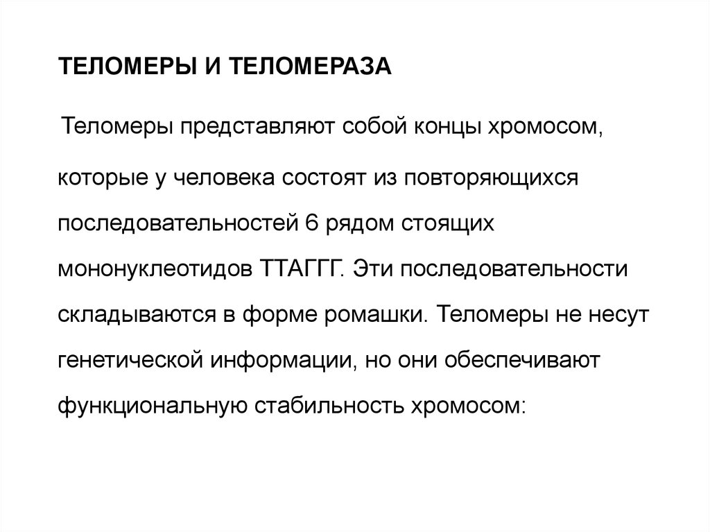 ТЕЛОМЕРЫ И ТЕЛОМЕРАЗАТеломеры представляют собой концы хромосом,