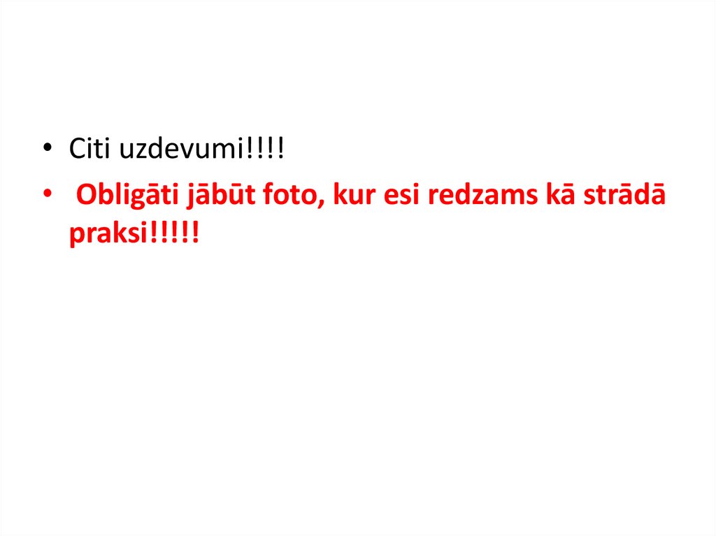 • Citi uzdevumi!!!!• Obligāti jābūt foto, kur esi redzams kā strādā