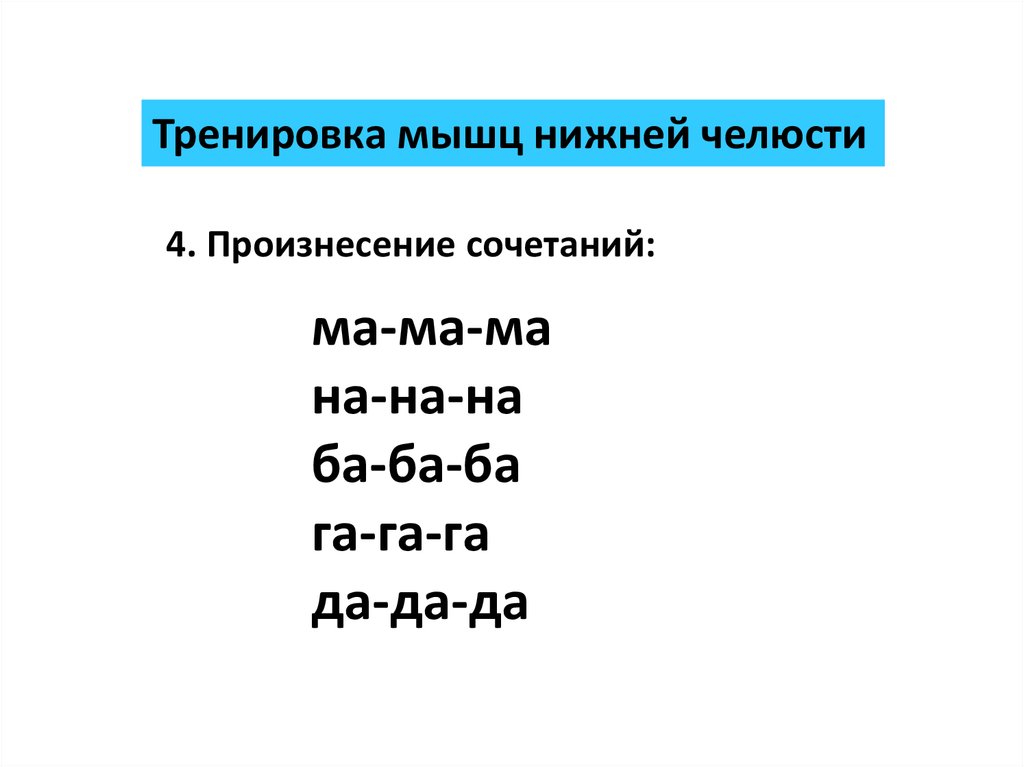 Тренировка мышц нижней челюсти5. Произнесение сочетаний с