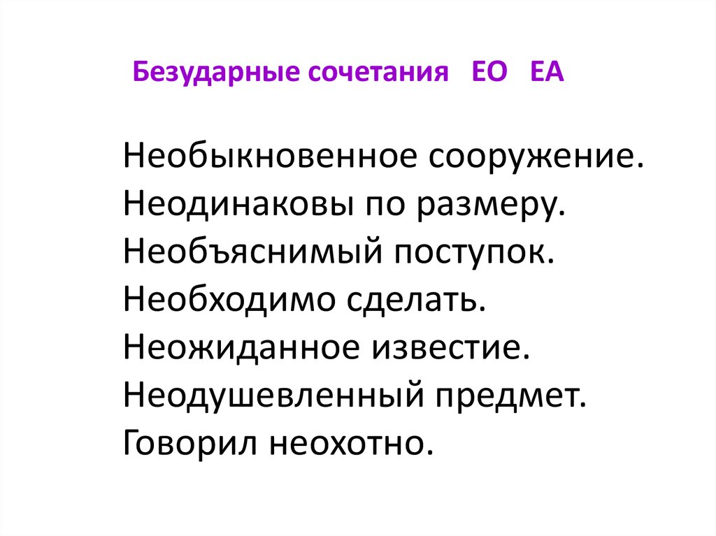 Безударные сочетания ЕО ЕАНеобыкновенное сооружение.