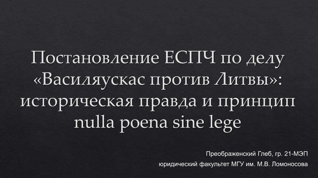 1. Постановление ЕСПЧ по делу «Василяускас против Литвы»: историческая правда и принцип nulla poena sine lege