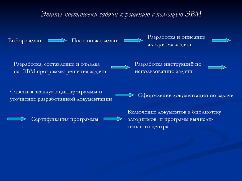 Этапы постановки задачи к решению с помощью ЭВМВыбор задачи