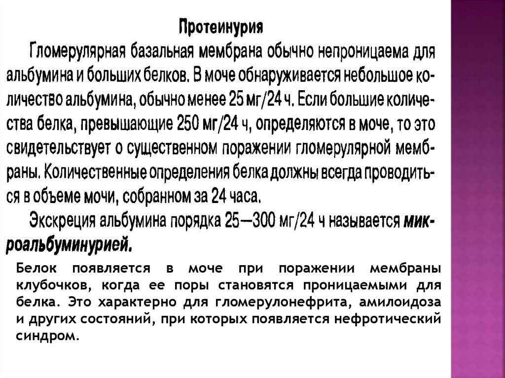 белка. Это характерно для гломерулонефрита, амилоидоза