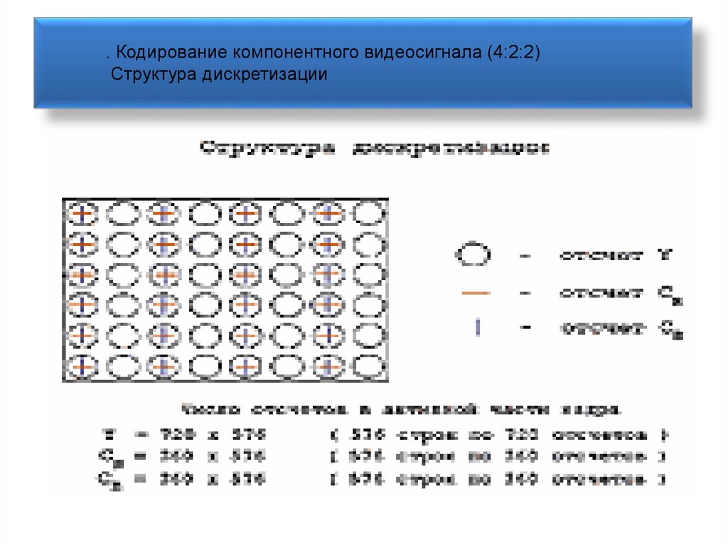 . Кодирование компонентного видеосигнала (4:2:2)Структура дискретизации