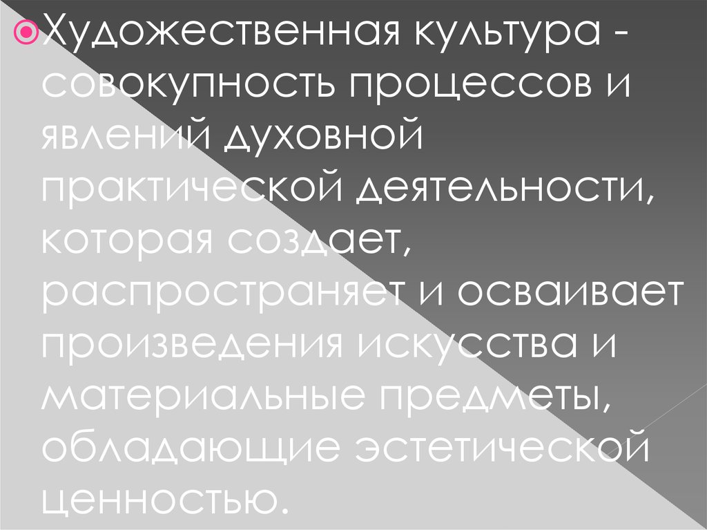 Художественнаякультура совокупность процессов и