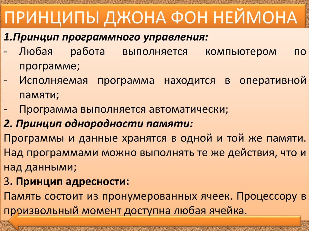 ПРИНЦИПЫ ДЖОНА ФОН НЕЙМОНА1.Принцип программного управления: