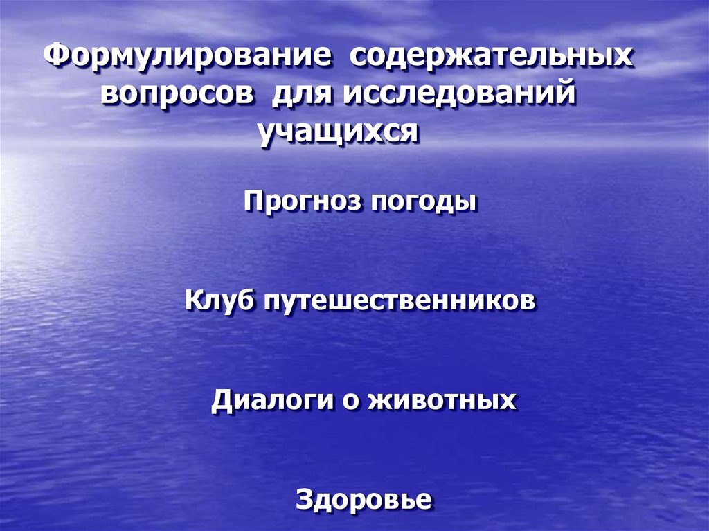 Формулирование содержательныхвопросов для исследований