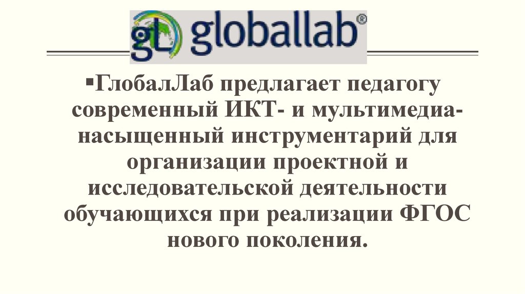 ГлобалЛаб предлагает педагогусовременный ИКТ- и мультимедианасыщенный инструментарий для