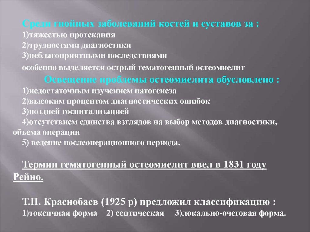 Термин гематогенный остеомиелит ввел в 1831 году