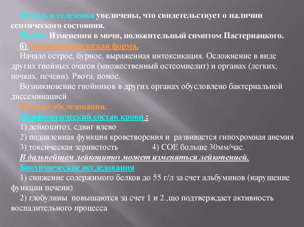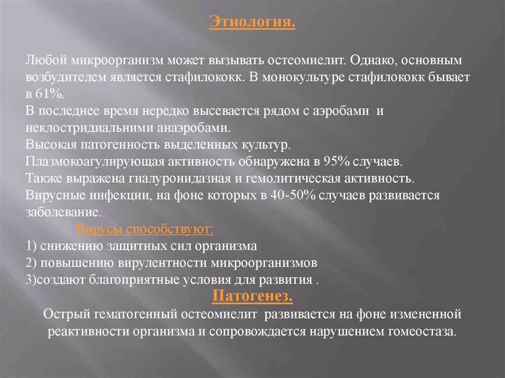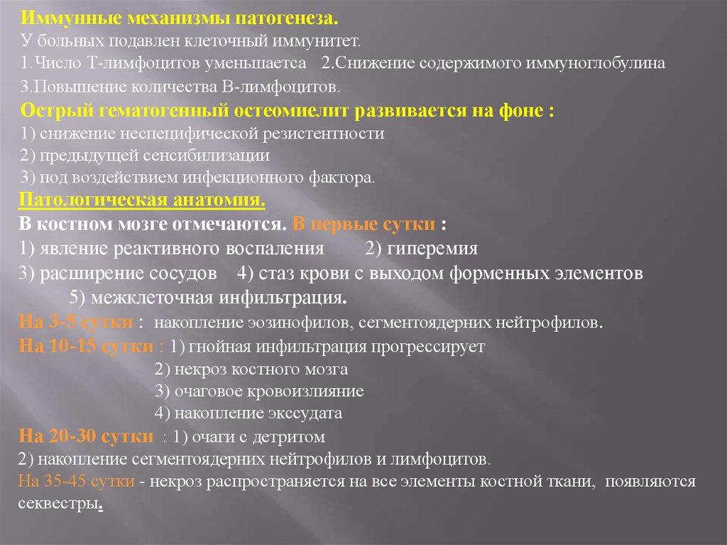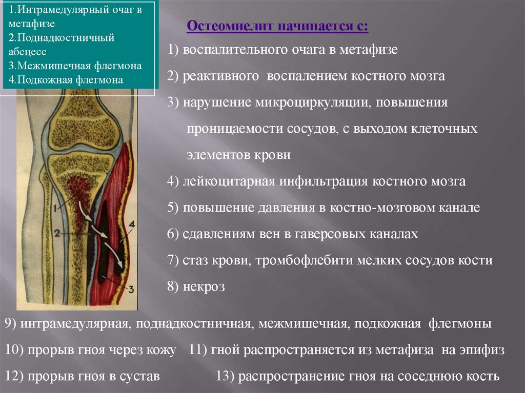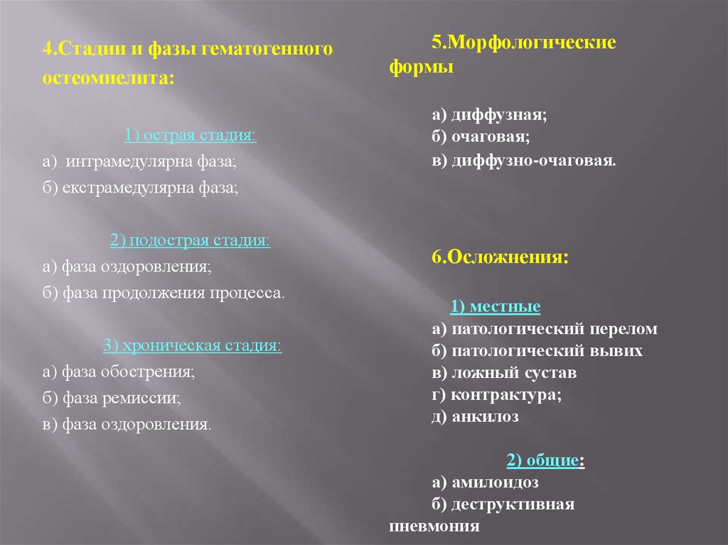 1) острый гематогенный остеомиелит: