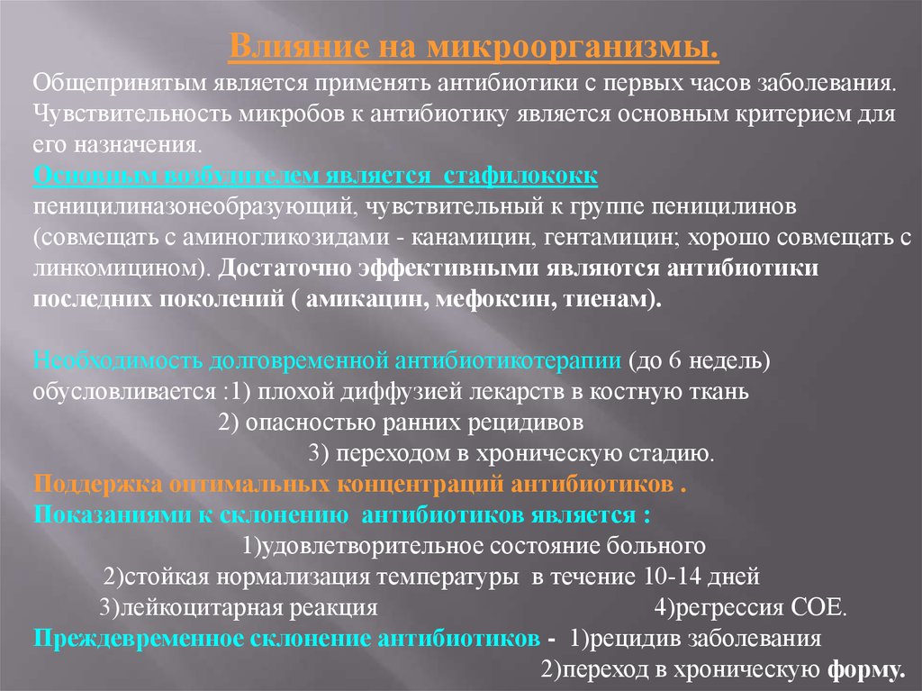 заболевания. Образуются антибиотикорезистентные штаммы с низкой